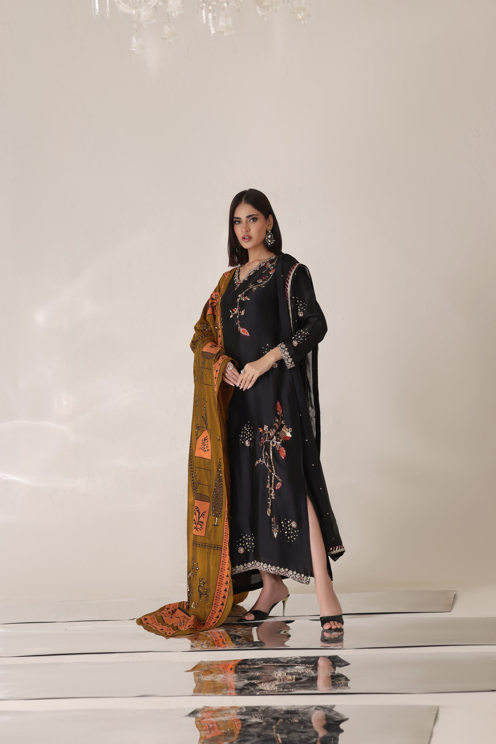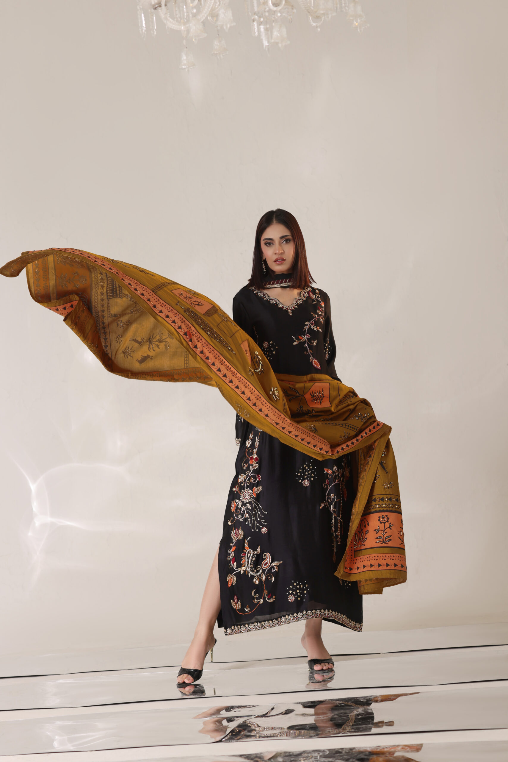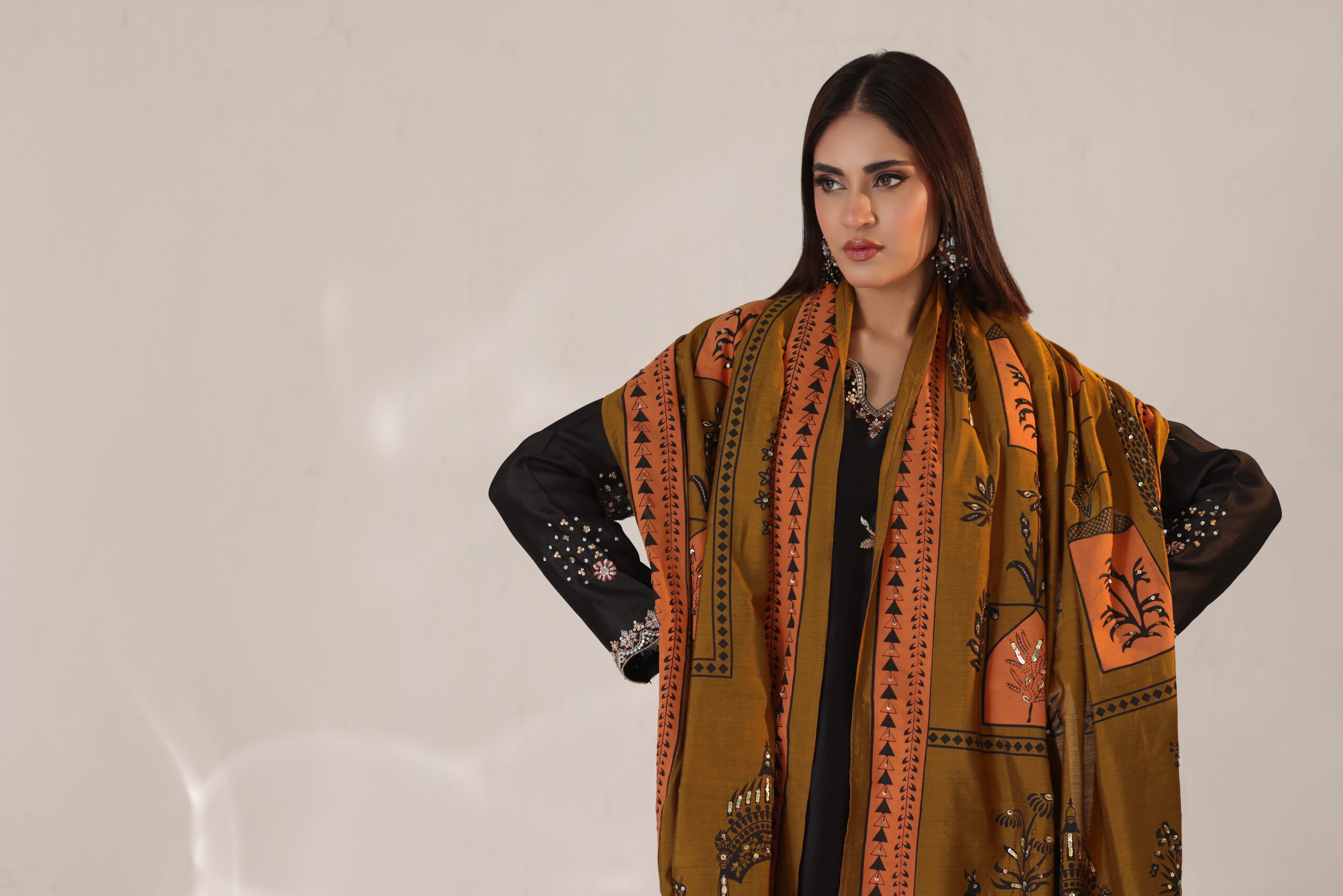 Work DetailsA Black print chadder with beautiful, intricate Aari work